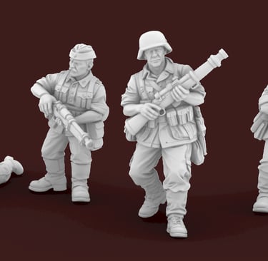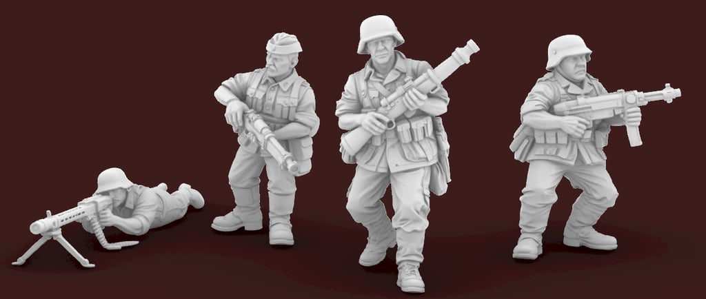Nossas exclusivas miniaturas de infantaria num preview exclusivo para vocês. Na ordem: Americanos/FEB, Alemães e Russos. Fiquem ligados que mais modelos estão a caminho!